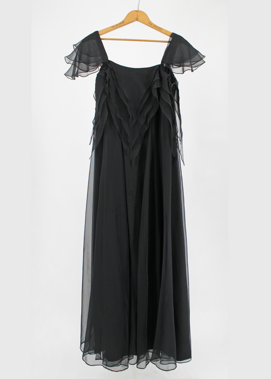 Jean Varon 1960s Handkerchief Midnight Organza Gown