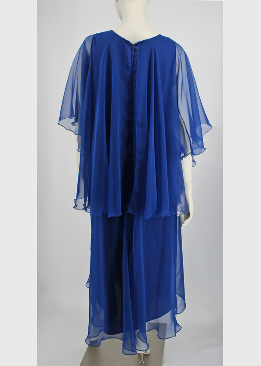 Jean Varon 1960s Sapphire Waterfall Maxi Dress